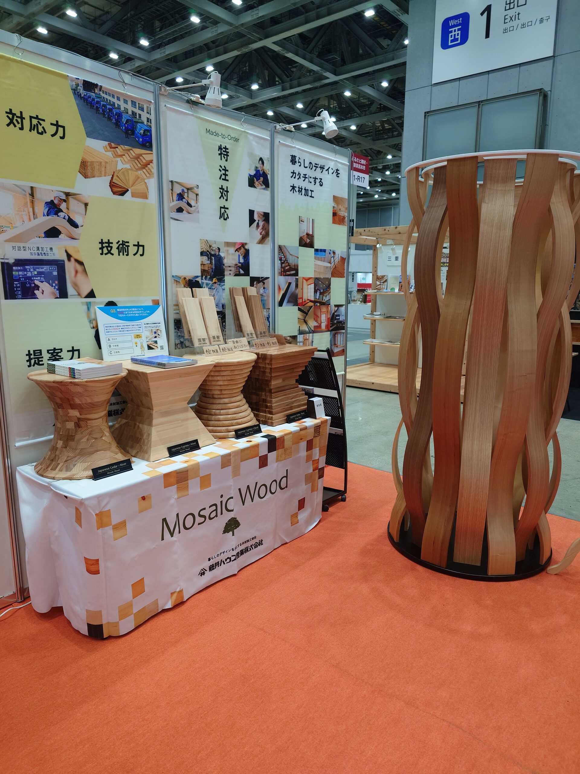 多くの来場者の方々にブースにお立ち寄りいただき、岐阜県産材の桧と杉をはじめ、様々な樹種の集成材で製作した